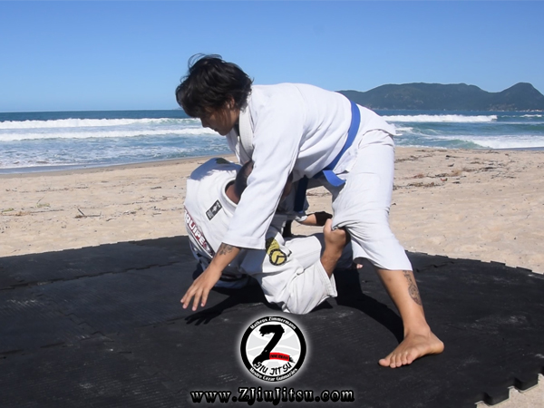Para realizar esse movimento, o adversário não pode estar muito posturado para trás, pois irá dificultar para puxar ele para cima.